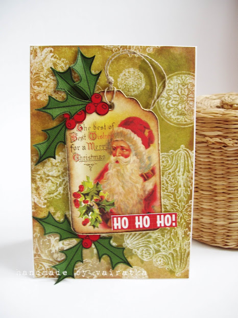 I na koniec - kartka z okienkiem, wieńcem i tekturką (+ wspomniany wyżej stempel - ostrokrzew)
